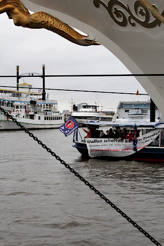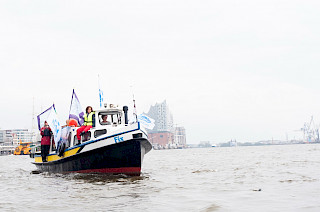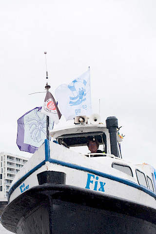 On August 22, 2021, the First Shefarers' Parade of Hamburg took place. A network of around 100 shefarers, artists, activists and researchers gathered on boats and ships in the port of Hamburg to show female presence on the water and make the demands of shefarers heard: stop the exclusion of females from maritime life! stop discrimination of female staff in maritime industries! Reclaim the port as a public space! Support female artists and researchers to develop new hydrarchical ways of urban life!