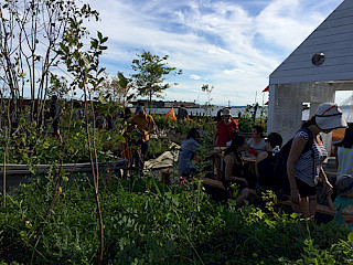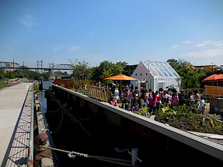 Swale is a provocative public artwork and a floating edible landscape on a reclaimed barge that launched in 2016. Growing or picking food on New York’s public land has been illegal for almost a century for fear that a glut of foragers could destroy an ecosystem. Swale utilizes marine common law in order to be public yet circumvent local public land laws. Swale is a folly, a floating edible landform that provides free food for harvest at the intersection of public art and service. With Swale, we want to reinforce water as a commons, and work towards fresh food as a commons too.