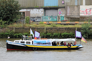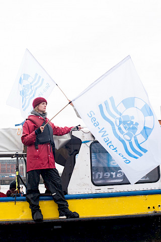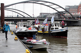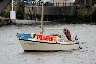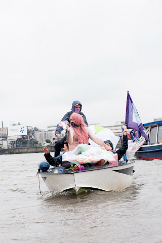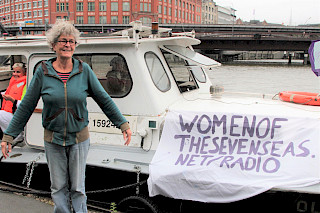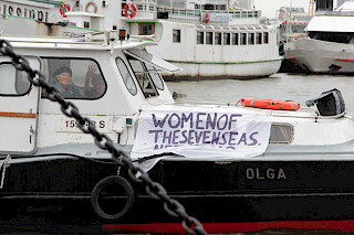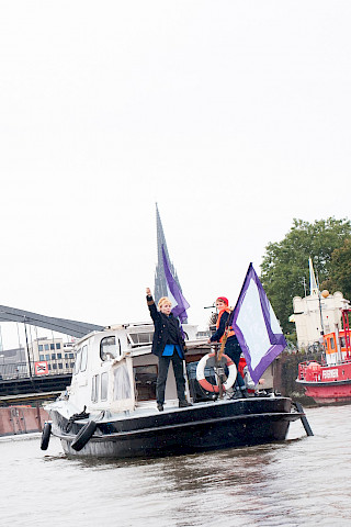 On August 22, 2021, the First Shefarers' Parade of Hamburg took place. A network of around 100 shefarers, artists, activists and researchers gathered on boats and ships in the port of Hamburg to show female presence on the water and make the demands of shefarers heard: stop the exclusion of females from maritime life! stop discrimination of female staff in maritime industries! Reclaim the port as a public space! Support female artists and researchers to develop new hydrarchical ways of urban life!