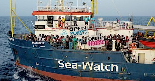 Kristin Feddersen is part of the Sea-Watch crew since 2021. Sea-Watch e.V. is a non-profit organization that conducts civil search and rescue operations in the Central Med. In the presence of the humanitarian crisis, Sea-Watch provides emergency relief capacities, demands and pushes for rescue operations by the european institutions and stands up publicly for legal escape routes. Kristin is working on board of the ships as well as on land to support the Sea-Watch operations. Kristin is also working as an artist and in the field of set-design for cinema productions.