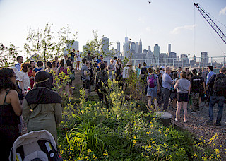 Swale is a provocative public artwork and a floating edible landscape on a reclaimed barge that launched in 2016. Growing or picking food on New York’s public land has been illegal for almost a century for fear that a glut of foragers could destroy an ecosystem. Swale utilizes marine common law in order to be public yet circumvent local public land laws. Swale is a folly, a floating edible landform that provides free food for harvest at the intersection of public art and service. With Swale, we want to reinforce water as a commons, and work towards fresh food as a commons too.